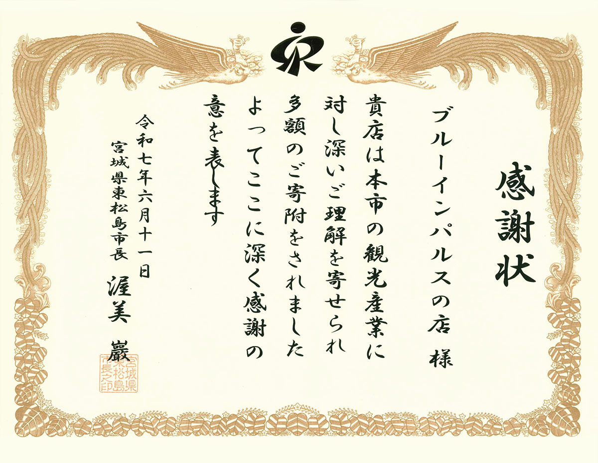2015年には「ブルーインパルスの店」をオープンし、売上金の一部はブルーインパルスの所属する松島基地のある東松島市の観光課の方に寄付させて頂いております。様々なグッズを通じてブルーインパルスの普及啓蒙の一助になれば幸いです。